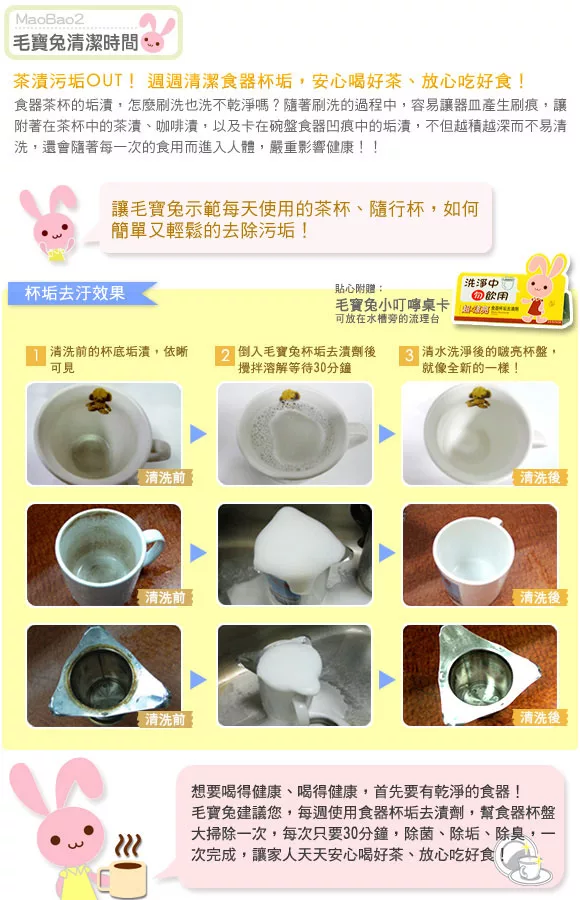 毛寶兔超啵亮食器杯垢去漬劑30gX5包-盒排行